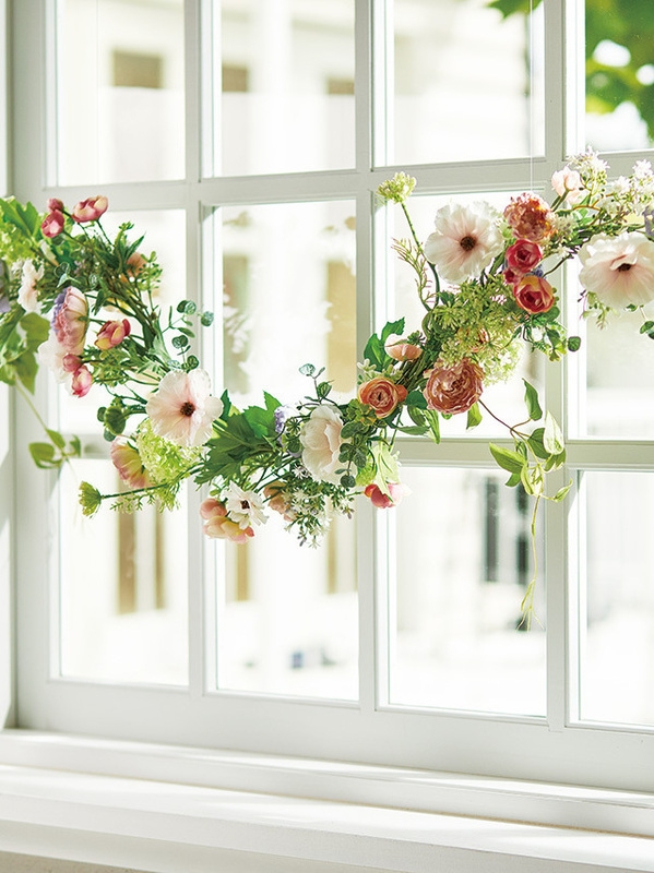 春の花々を楽しむガーランド。