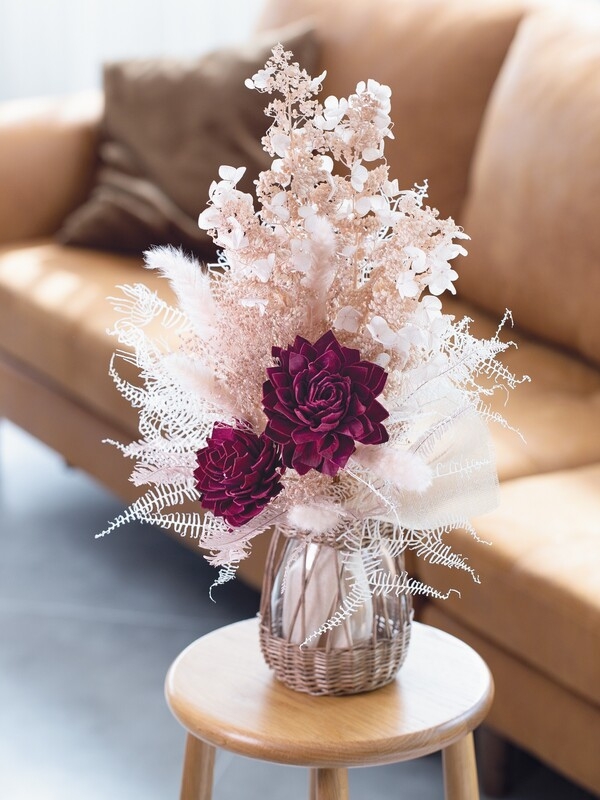 ハンドメイドフラワーが主役のインテリアアレンジ