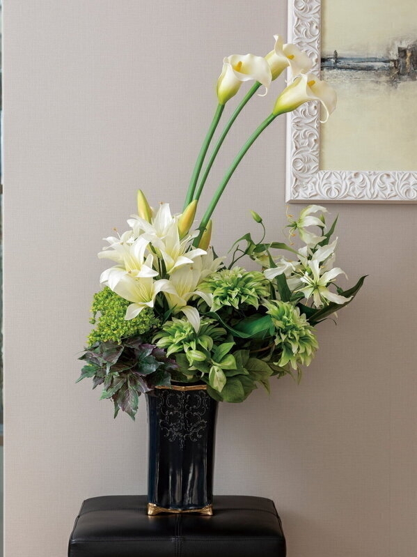 ホワイトのカラー&リリーを使った伸びるアレンジ。