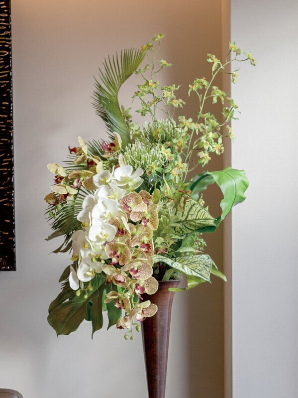 グリーン系カラーでまとめたボタニカルなアレンジ。