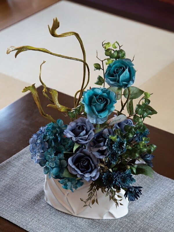 ジャパンブルーカラーをふんだんに使ったアレンジ。