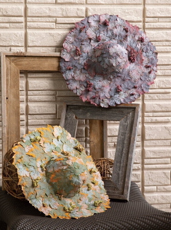 ハニカムボウを土台にカラーリーフを帽子型にアレンジ。