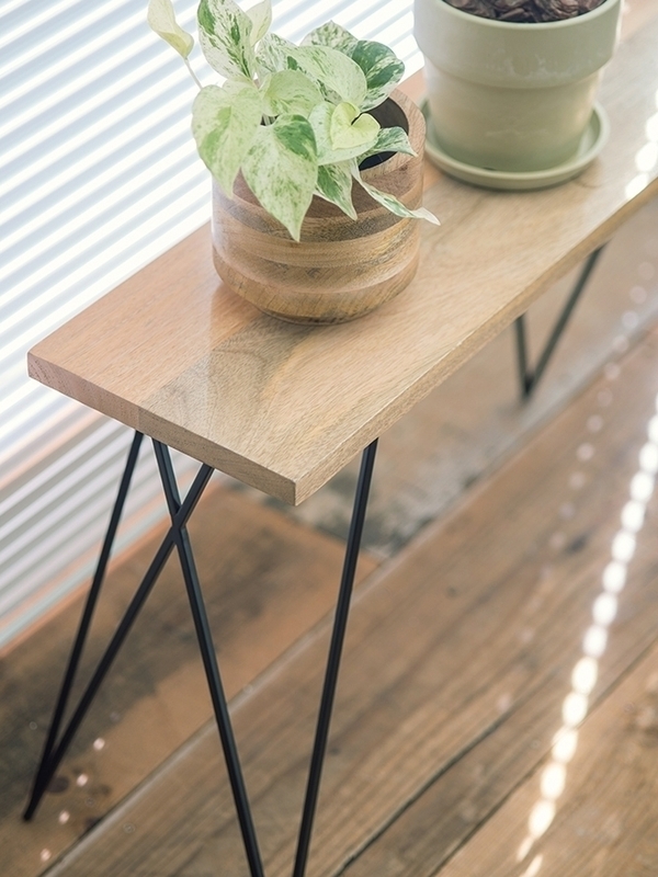 玄関や窓際などのスペースが確保しにくい所に置きやすいスタンド。シンプルながらもデザイン性のあるジグザグしたアイアンは小家具としても楽しめます。