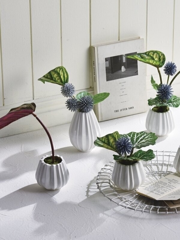 小さな花器と少しのグリーンで楽しむリーフデコ。