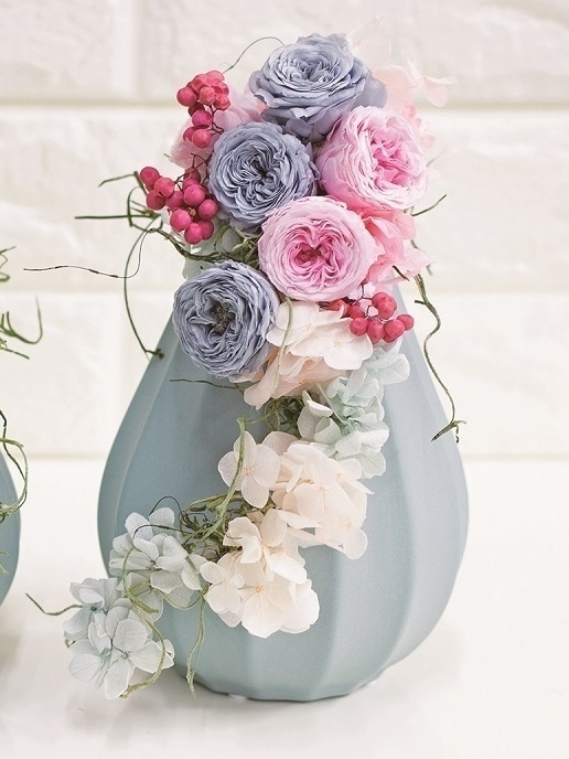 即日★【プリザーブド】プリマヴェーラ/ナナ ガーデンローズ 8輪 アシュレーブルー/88435 |