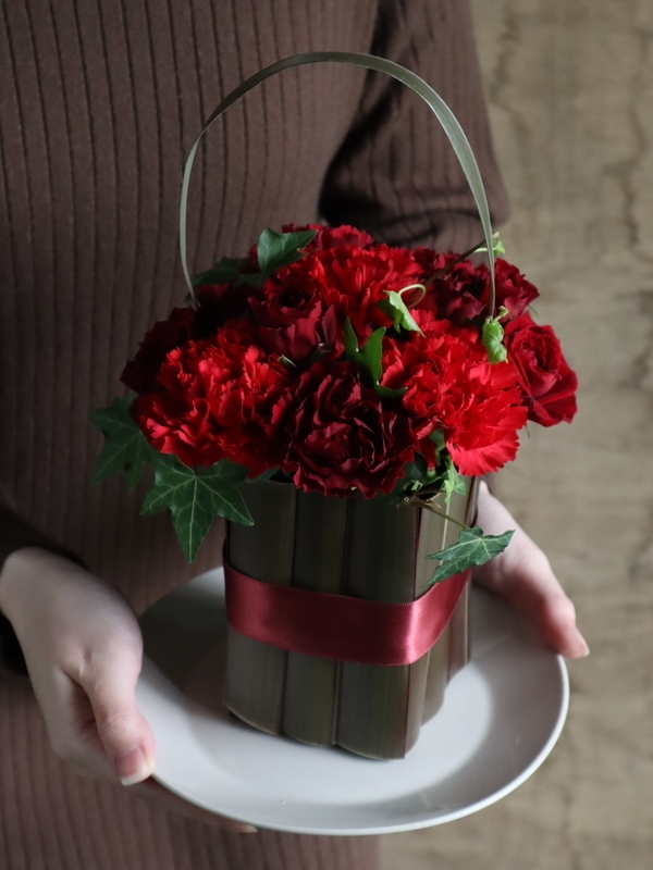 赤いカーネーションで母の日アレンジ