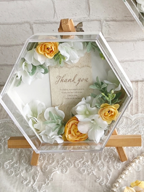 ■六角形が持つ特別な意味「愛情」「家族」「調和」「安定」「平和」「長寿」。特別な日に、ギフトケースとして使用することで、送り手の気持ちを伝えることの出来る、新コンセプトのフラワーケースです。
