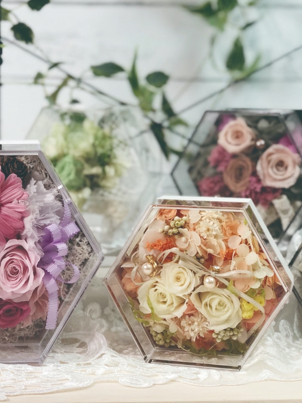 プレゼントに最適な「しあわせ」の意味を持つクリスタルボックス。コンパクトな手のひらサイズなので使いやすく、フラワーケースやアクセサリーケースとしてもご使用頂けます。