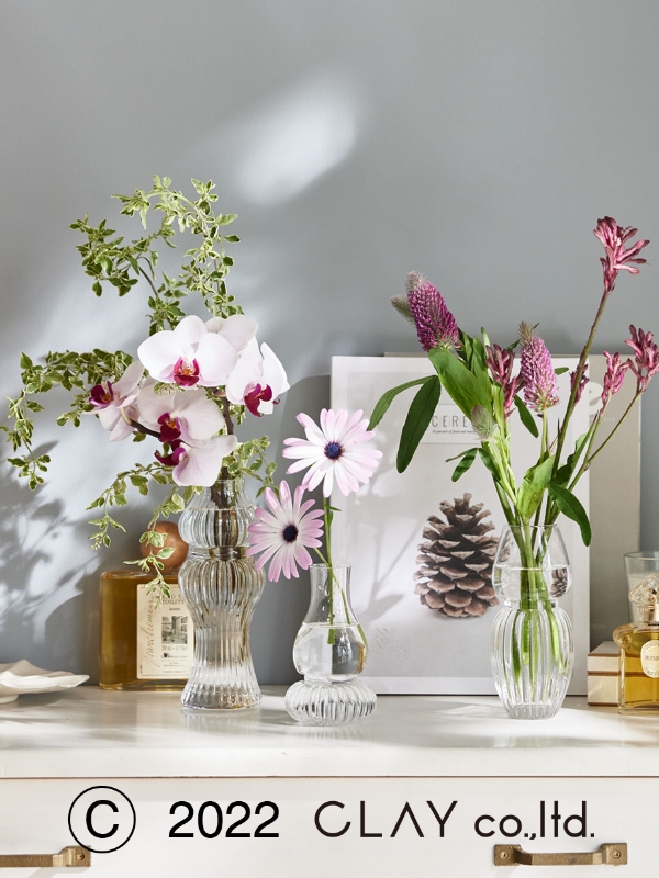 くびれ部分を花留に使えるので、短くなったお花にも便利なフラワーベースです。