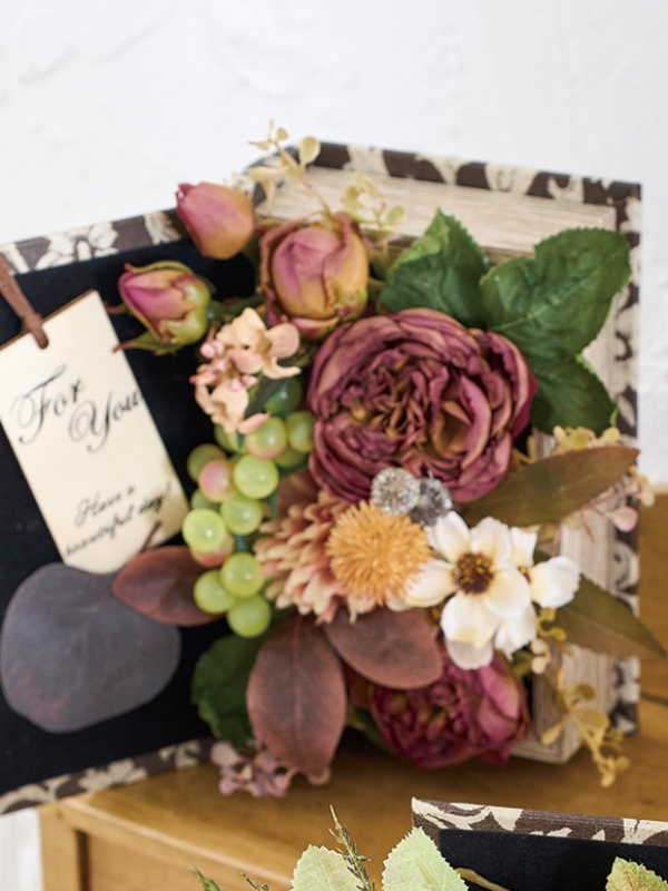 本型のベースを立てて使ったアレンジです。フォームをボンドでベースに接着してアレンジしています。