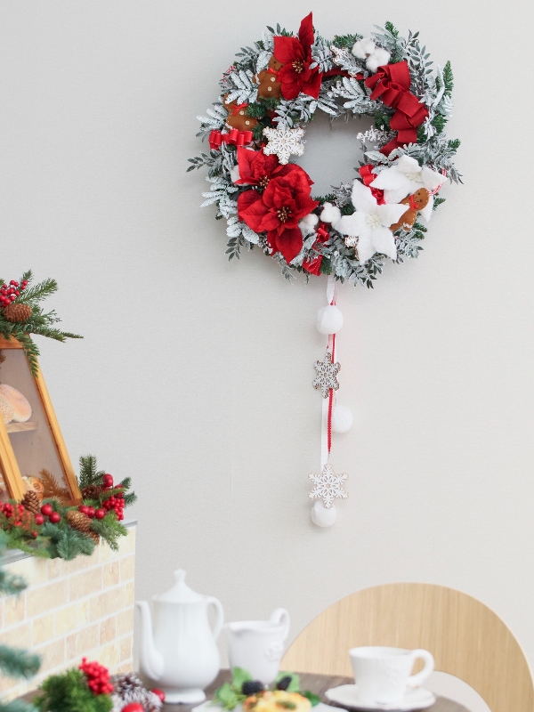 ホワイト&レッドのクリスマスリース