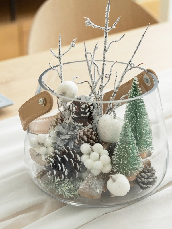 ガラスの中にツリーを作るアイディアアレンジ。