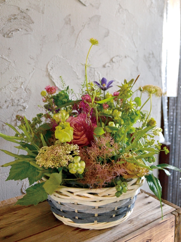 清々しいブルーグラデーションのバスケットにアレンジした作品です。