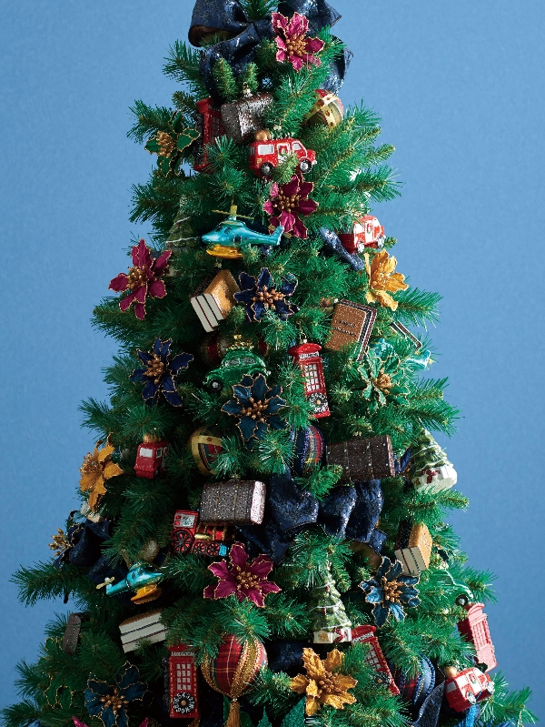 オーナメントやポインセチアで飾るツリー。