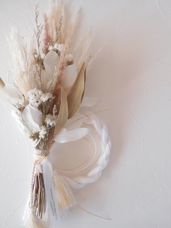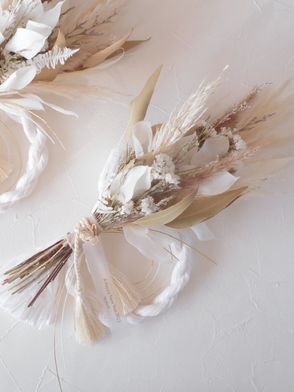 背筋がスッと伸び、気持ち良く新年を迎えるのに相応しいお洒落なしめ縄飾りです。