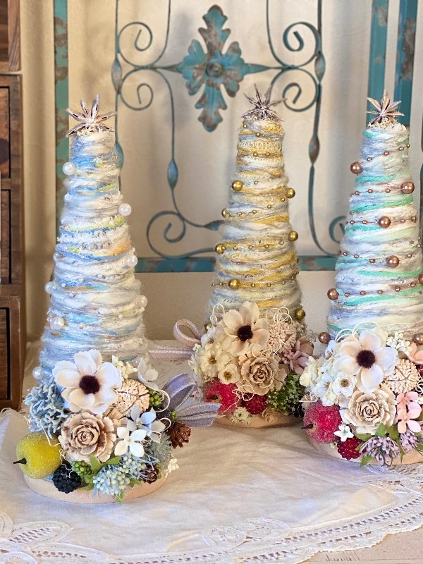 木の実等をグルーで付けただけですが、聖夜を華やかに演出してくれます。