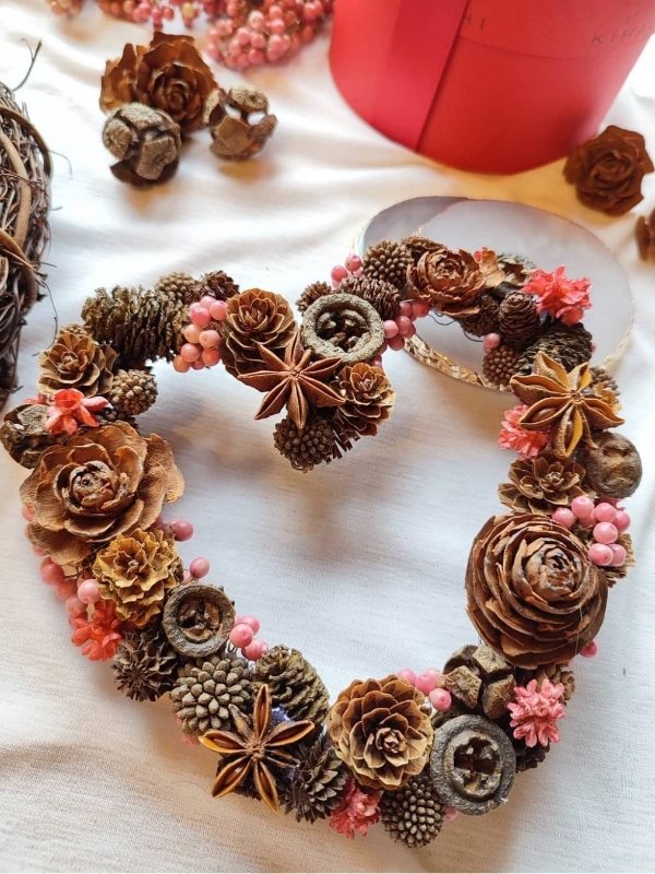 茶色の木の実を沢山使い、優しいピンクが甘い印象に.。.:*♡