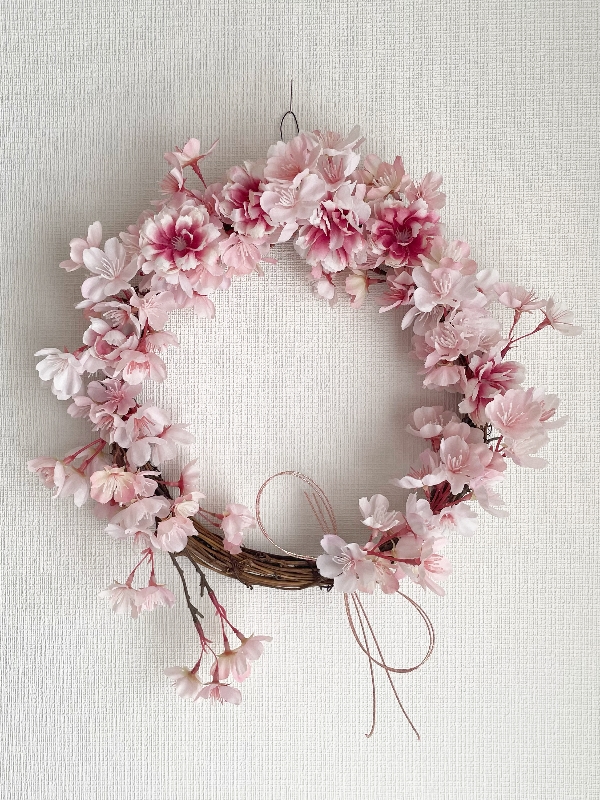 桜が咲きほこり、枝が自然にしなる様子を表現したリースです♪