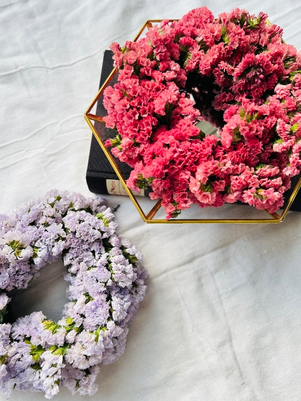 ふわっふわ、ボリューム満点のスターチスのリースです。
