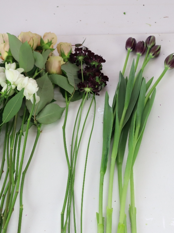 バラと黒チューリップの花束