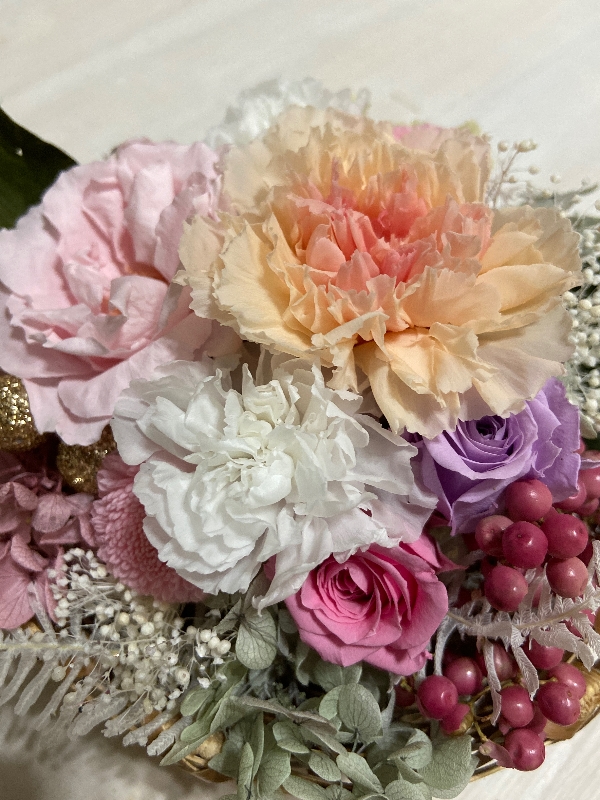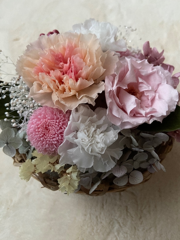 ピンクのカーネーションと紫陽花がとてもキュートです