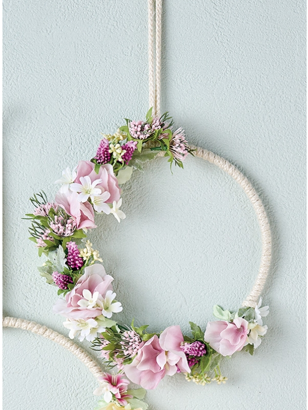 小花で飾るロープリース。