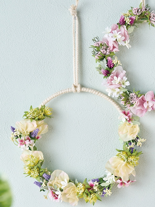 小花で飾るロープリース。