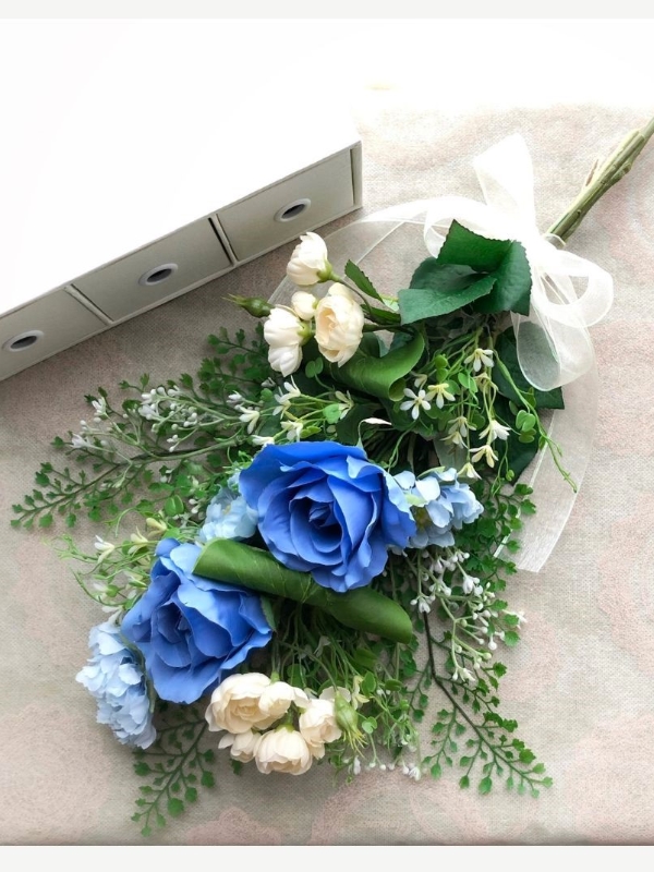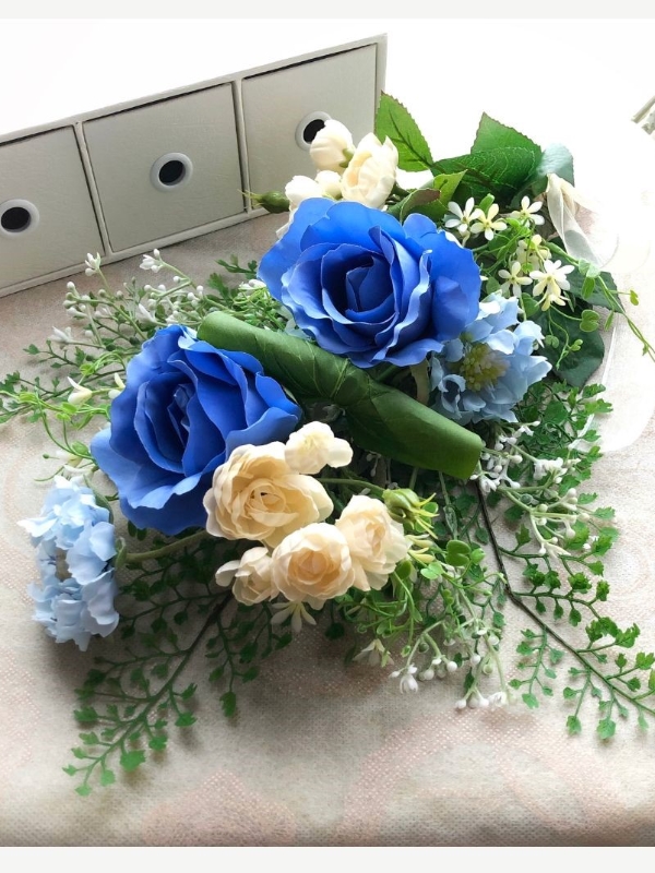幸運を引き寄せるブルーローズを基調にした爽やかなスワッグ