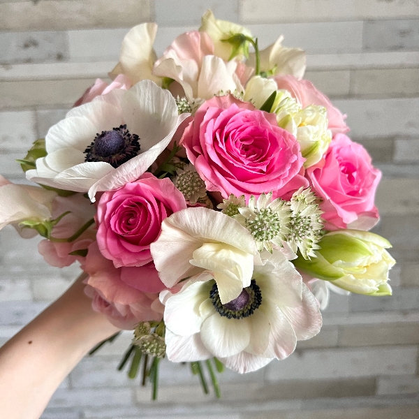 アネモネやラナンキュラス、チューリップなどの春のお花をふんだんに使ったブーケです!