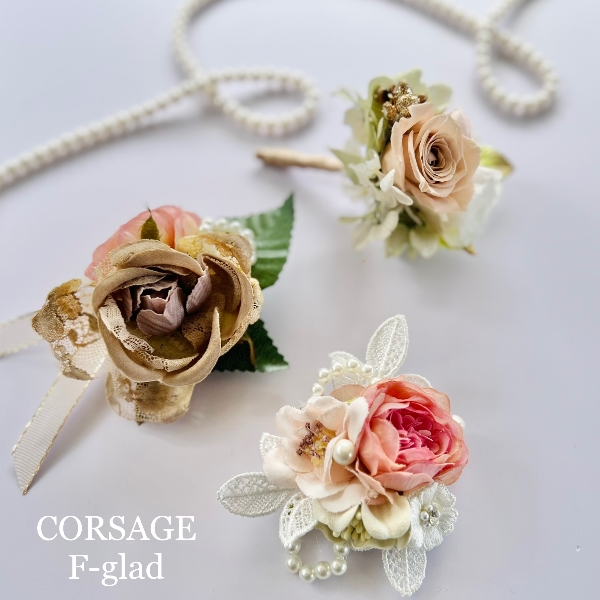 アーティフィシャルフラワーとプリザーブドフラワーのコサージュ☆