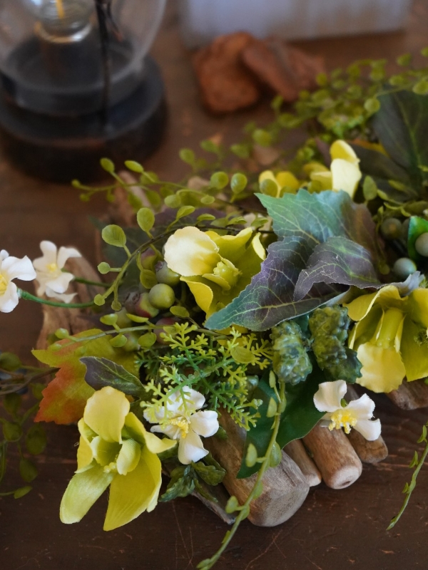 このアレンジメントは、清潔感があり落ち着いた雰囲気のお部屋によく似合います。また、シンビジウムの色合いや葉の緑色が、モダンなインテリアにも合うため、幅広いスタイルのお部屋に取り入れることができます。