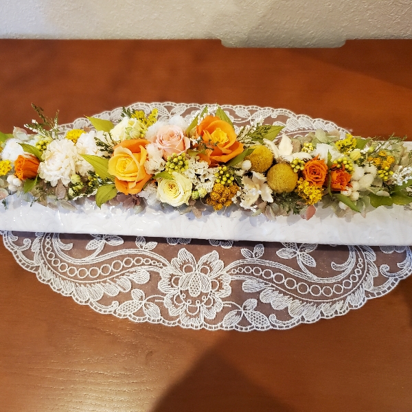 とにかく明るい方に贈りたいので、明るいアレンジをとのご依頼をうけ、オレンジを中心にビタミンカラーでしあげました。