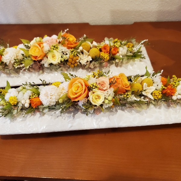 玄関に華々しくかざるというよりも、リビングや、廊下、食卓テーブルの上、寝室のドアなど、生活する中でふと目にした瞬間に優しい気持ちになれるようなさりげないお花飾りを目指しています