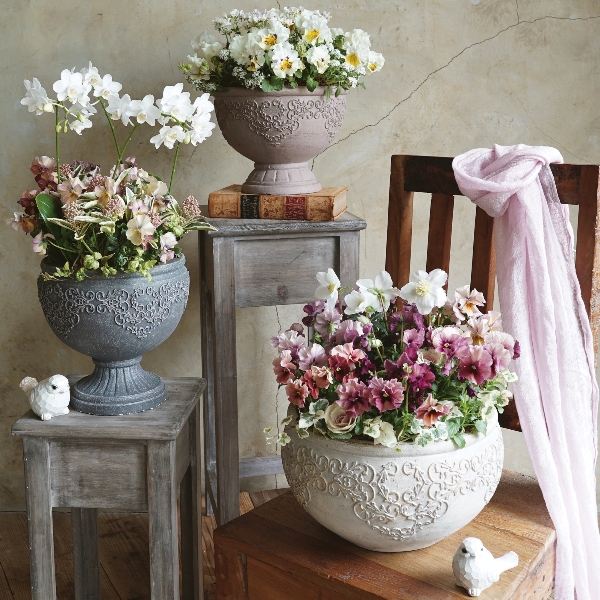 可愛い動物のオブジェをはじめ、アフリカンやエスニック系のかっこいい系、アラベスク柄やダマスク柄といったエレガント系のものまで、どなたでもお取り扱いいただけるように幅広いジャンルのデザインの鉢を数多く企画開発しております。