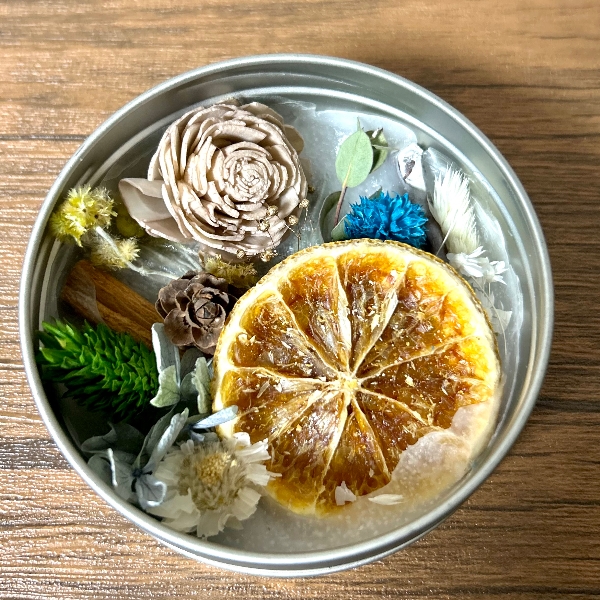 オレンジのアロマの香りがするナチュラルなワックス缶。