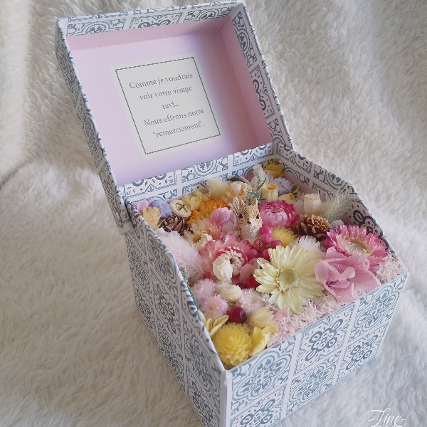モロッコタイル風の箱にお花を詰めて、お花の詰め合わせを作りました。