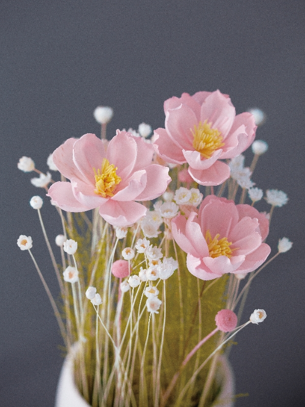 ハンドメイドフラワーのソーラーチェリッシュと小花を使ったナチュラルで優しい雰囲気のアレンジメント