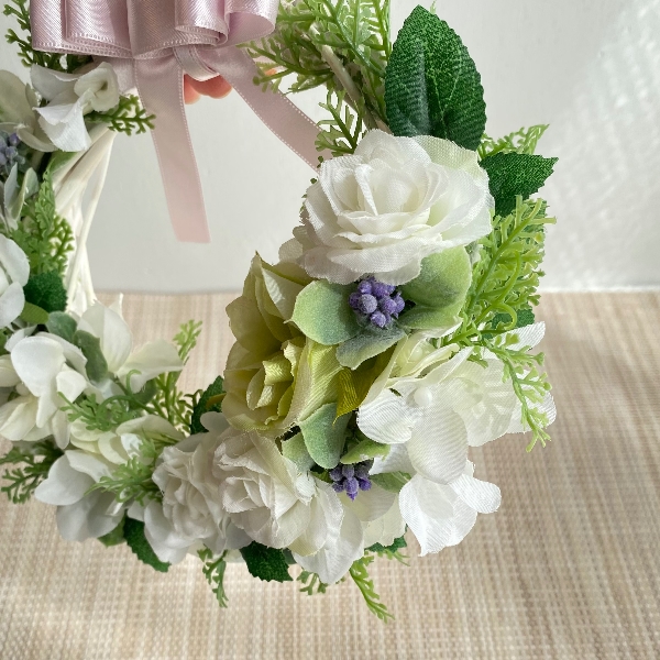 ライムグリーンのバラとベリーをプラスして爽やかなブーケ風のミニリースに仕上げました。