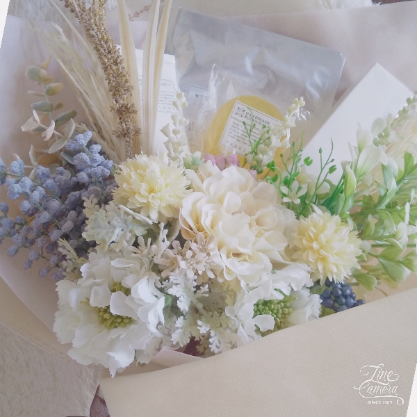 結局のところブーケはトスせず直接お渡しするようですが、受け取るお友達が、たくさんの幸せをゲット出来ますように…との願いを込めて、作成したブーケです♪