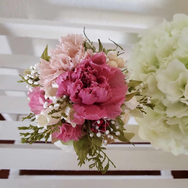 玄関に華々しくかざるというよりも、リビングや、廊下、食卓テーブルの上、寝室のドアなど、生活する中でふと目にした瞬間に優しい気持ちになれるようなさりげないお花飾りを目指しています