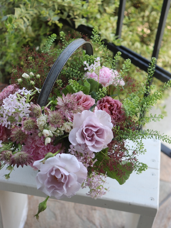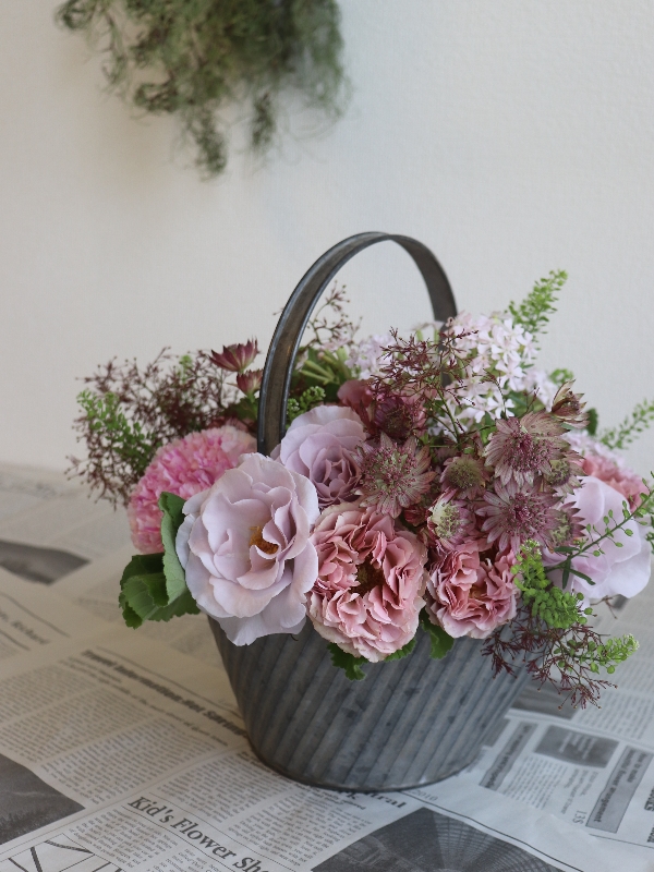 バラとピンク系の小花のアレンジです