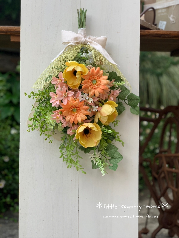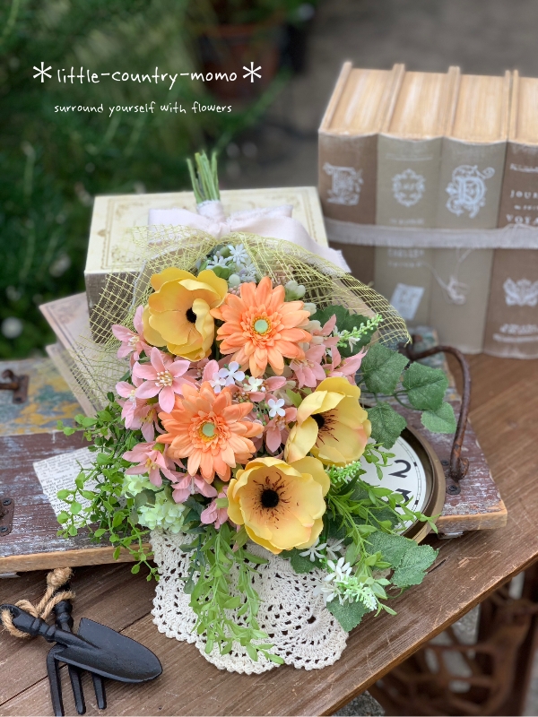 ガーベラ アネモネを暖色系使いで仕上げ見ているだけで元気に‼︎