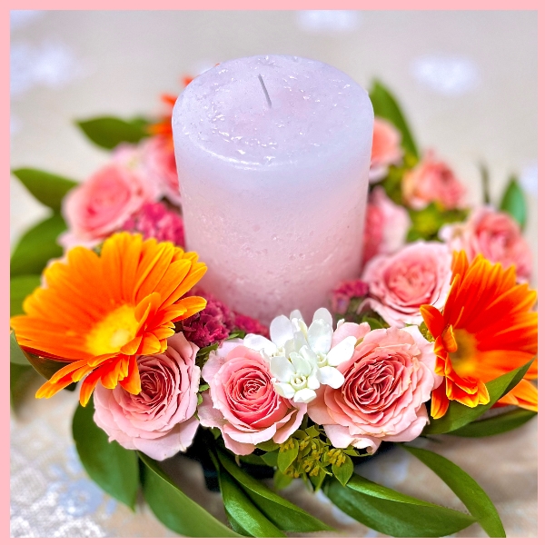 寒暖差が激しく体調も気持ちも上がらないこの時期に、オレンジ系のキャンドルリースにアロマキャンドルを入れてティータイム。
