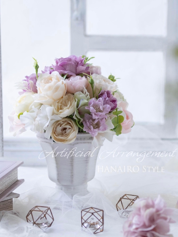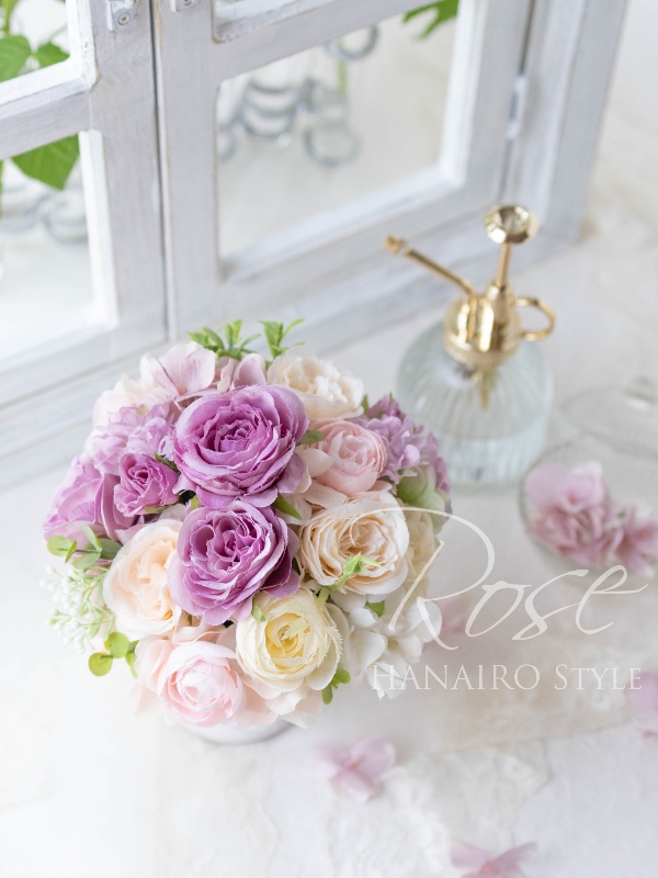 同じトーンのピンクやクリームなどのお花を合わせています。