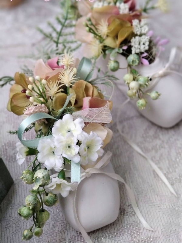 シューズの形が生かされるように縦のラインを意識してアレンジしました。壁に掛けたときベリーが垂れ下がります。