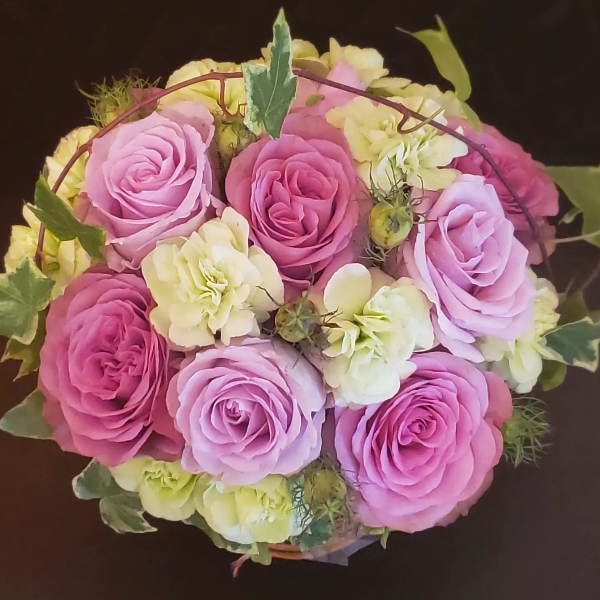 華やかなラウンドアレンジ。