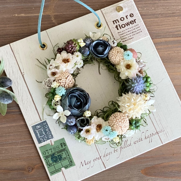 先にあげた茶色のボード付きリースの色違いバージョンです。