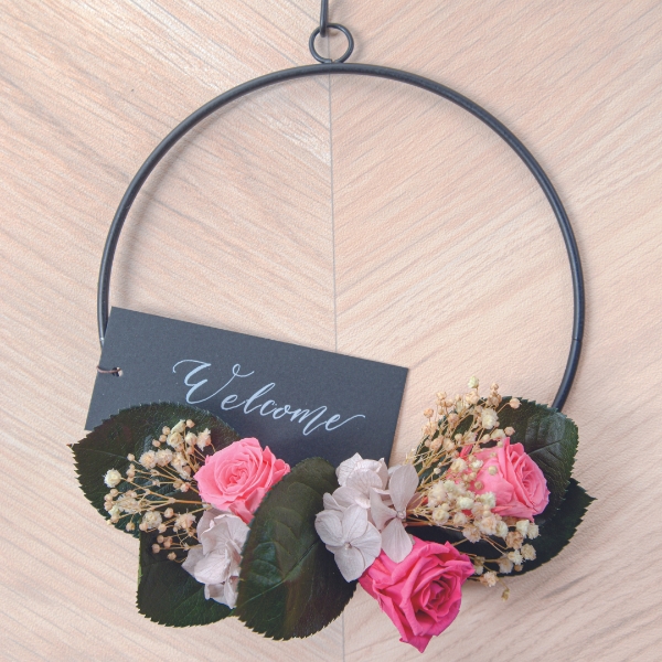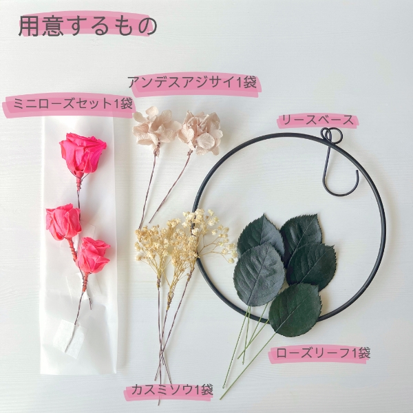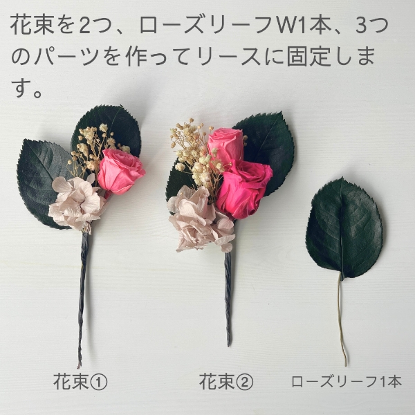 ワイヤー付きのミニローズを使ったリースアレンジ