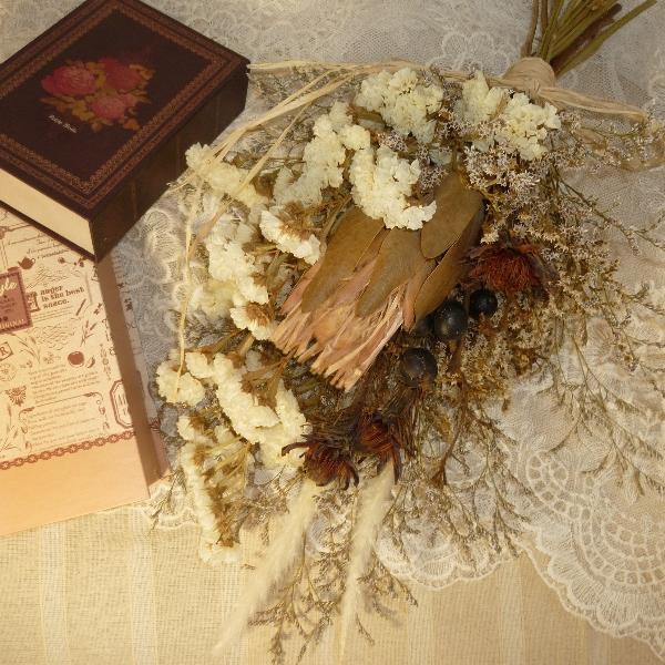 プロテアと白いスターチスのスワッグ(ブーケ)