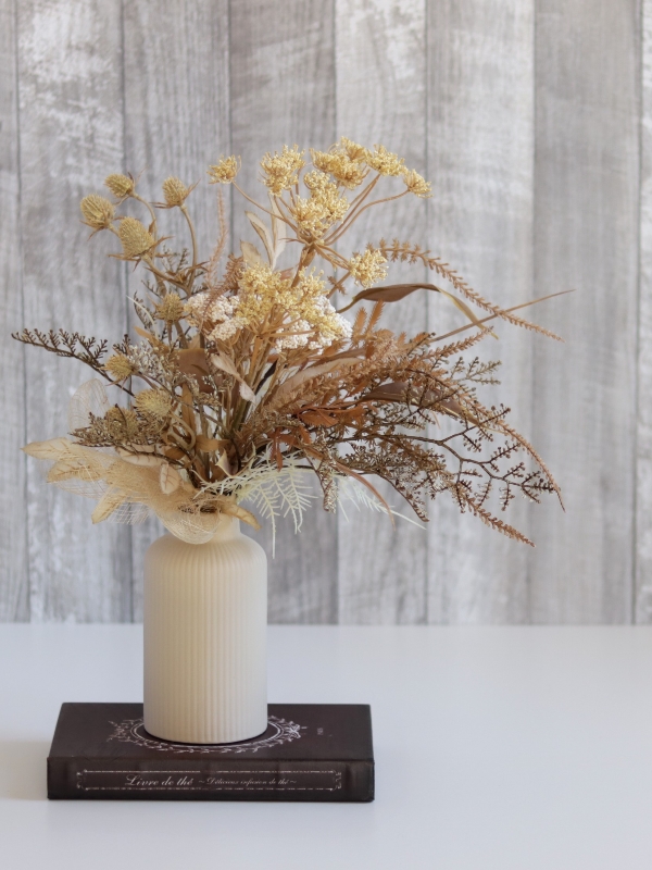ドライ風のアーティフィシャルフラワーでまとめたブーケアレンジです。